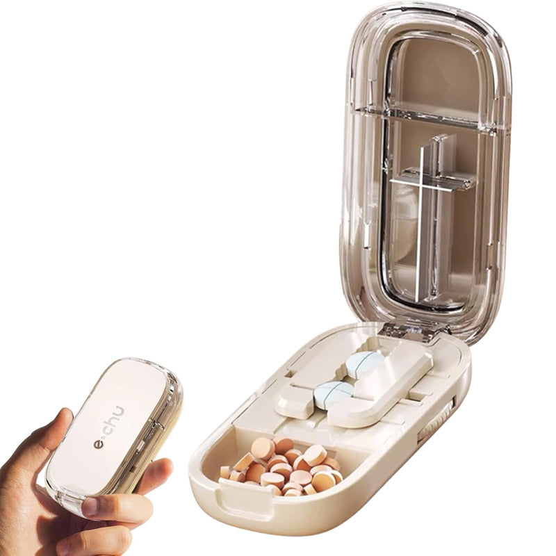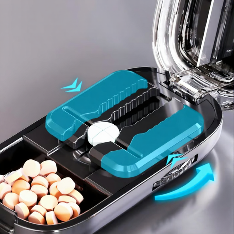 Kutija za Deljenje i Čuvanje Tableta dizajnirana je da olakša svakodnevno doziranje lekova i suplemenata. Omogućava precizno sečenje tableta na polovine ili četvrtine, uz dodatni prostor za njihovo bezbedno čuvanje – idealno rešenje za kućnu upotrebu i putovanja.